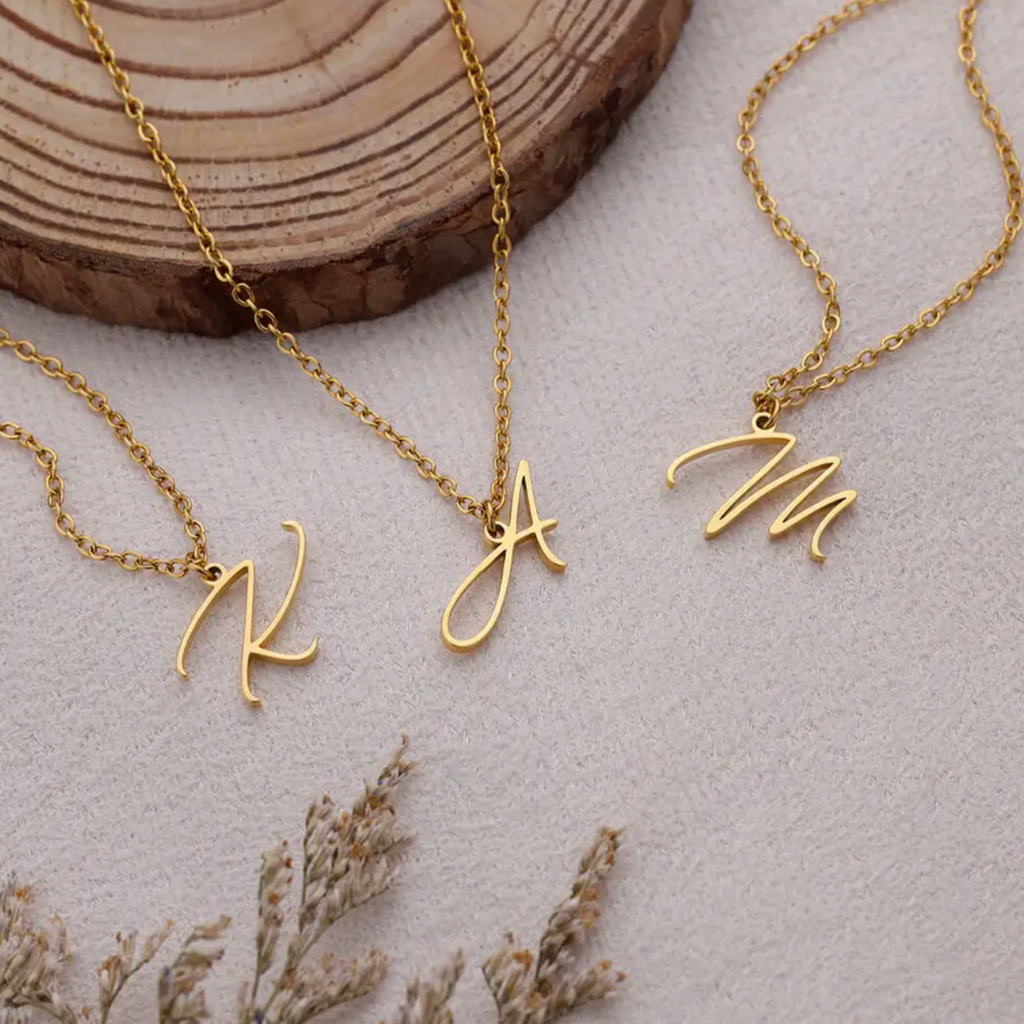 The letter pendant is approximately1.7cm x2cm. There may be a slight difference in size per necklace due to the letter and style. The letters are all done in a handwritten calligraphic style.